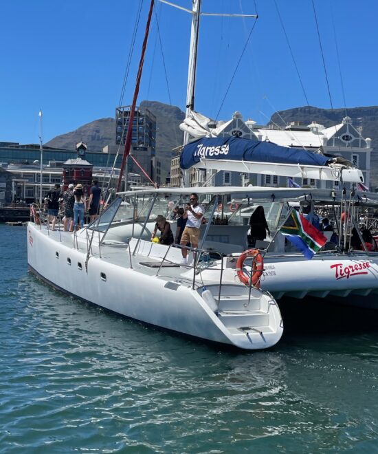 Relax on a luxury catamaran as you sail into Cape Town’s golden sunset along the Atlantic Ocean — an unforgettable way to end your day.